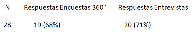 las encuestas y un 71% de participación en las entrevistas.